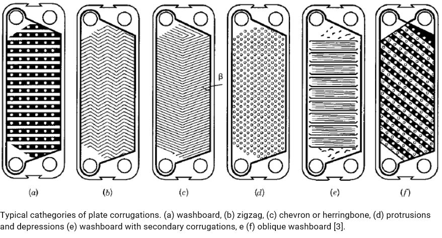 플레이트 열교환기는 평판에 파상(wave shape)의 돌기부를 프레스로 가공하여 전열면으로서 사용한다. 이 열교환기는 종래에는 액-액용 열교환기가 대부분 이었지만, 최근에는 증발기, 응축기, 가스-가스 열교환기로서도 사용되고 있다. 또한, 종래에는 플레이트와 플레이트 사이에 개스켓(gasket)을 매개로 하여 플레이트를 중첩하여 압착시킨다. 이때 각 플레이트 사이에 유로가 형성되며, 이 유로를 플레이트 한 장 간격으로 고온과 저온액이 교대로 흐르는 구조로 되어 있다.